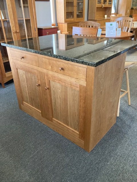 OUR CHERRY ISLAND HAS 6 GRANITE TOP OPTIONS ON DISPLAY IN OUR SHOWROOM. ALSO, WE CAN PRODUCE YOUR ISLAND WITH A SOLID MAPLE BUTCHER BLOCK TOP